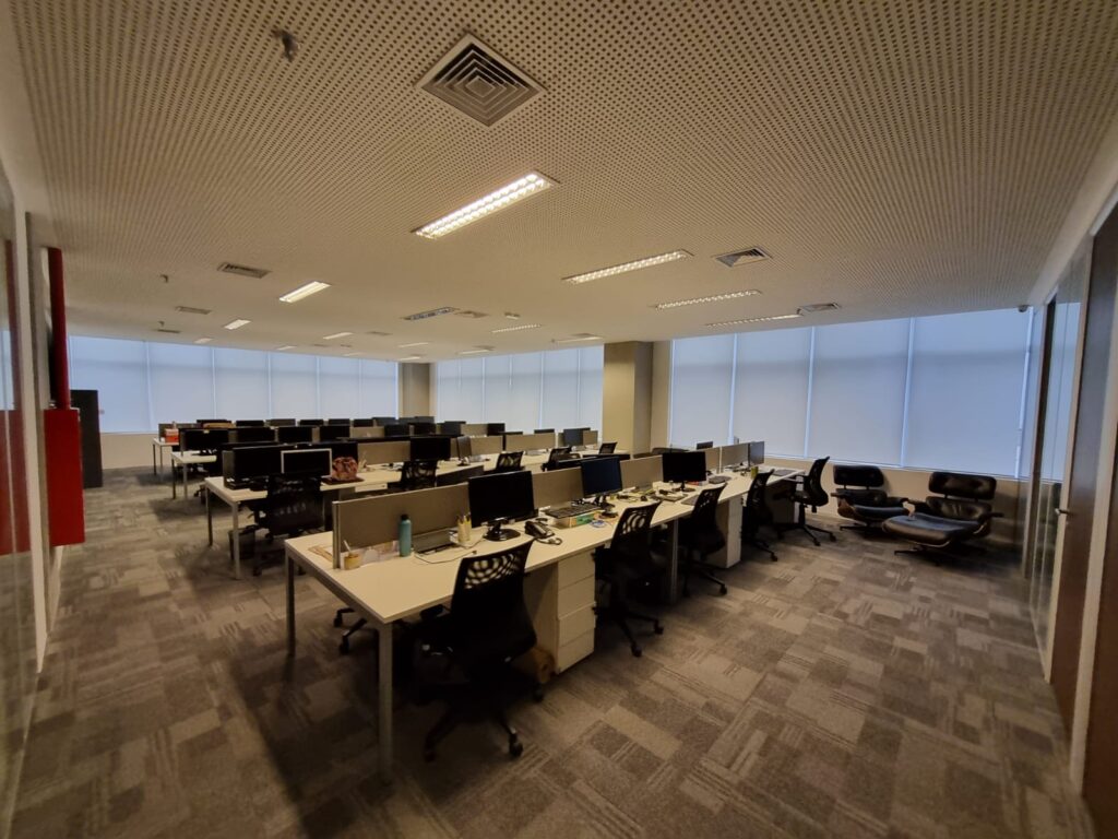 Tubulação elétrica e de dados, hidráulica, remanejamento de banheiros, acabamentos de piso, tetos acústicos, ar condicionado, mudança pontos de sprinklers, instalação de luminárias, tela tensionada, paredes de gesso, divisórias, pintura e marcenaria